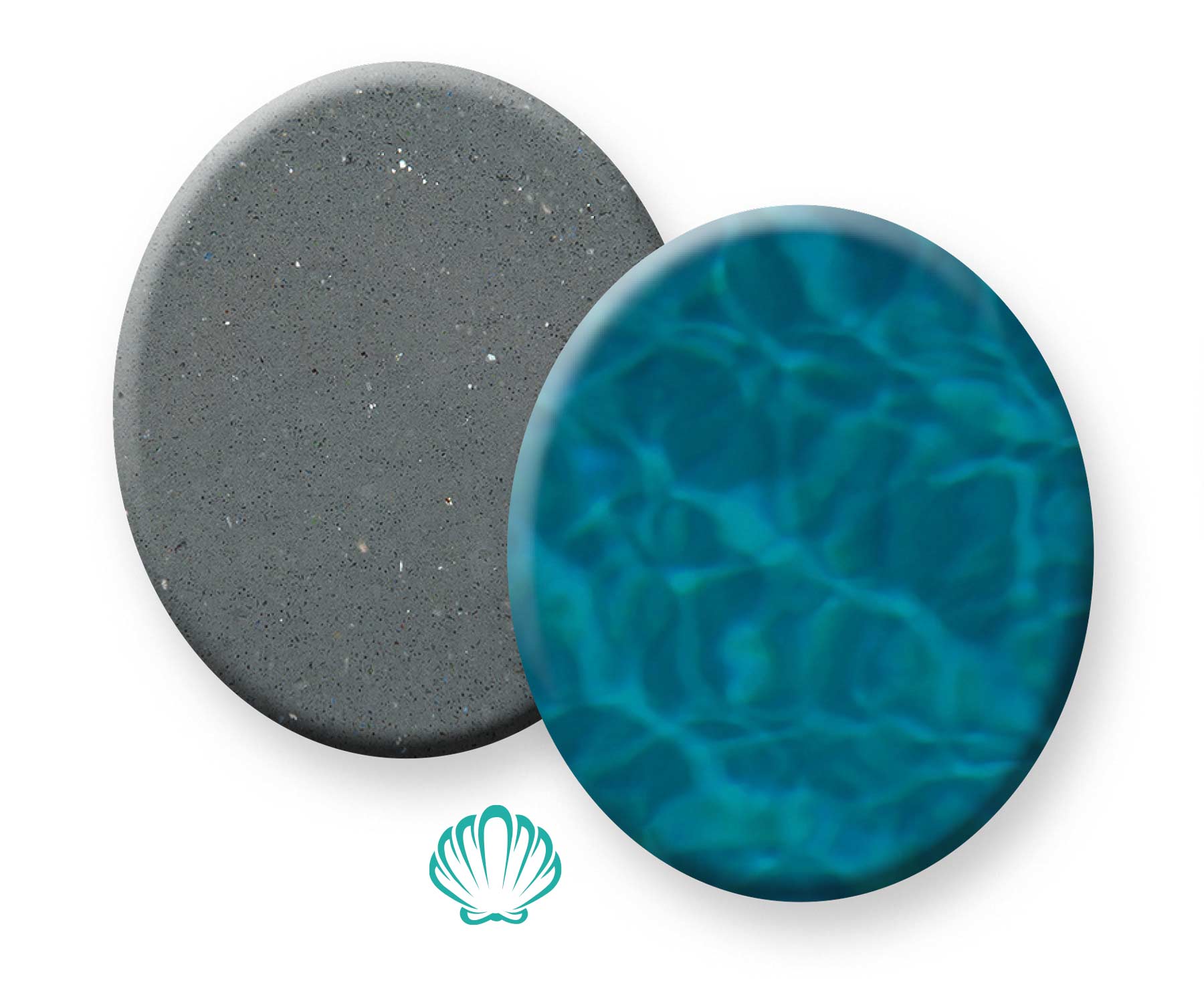 Coordinate our pearlescent and blue White Sand pool tile with light to medium shades of PebbleTec pool finishes for a calming, serene water color.
